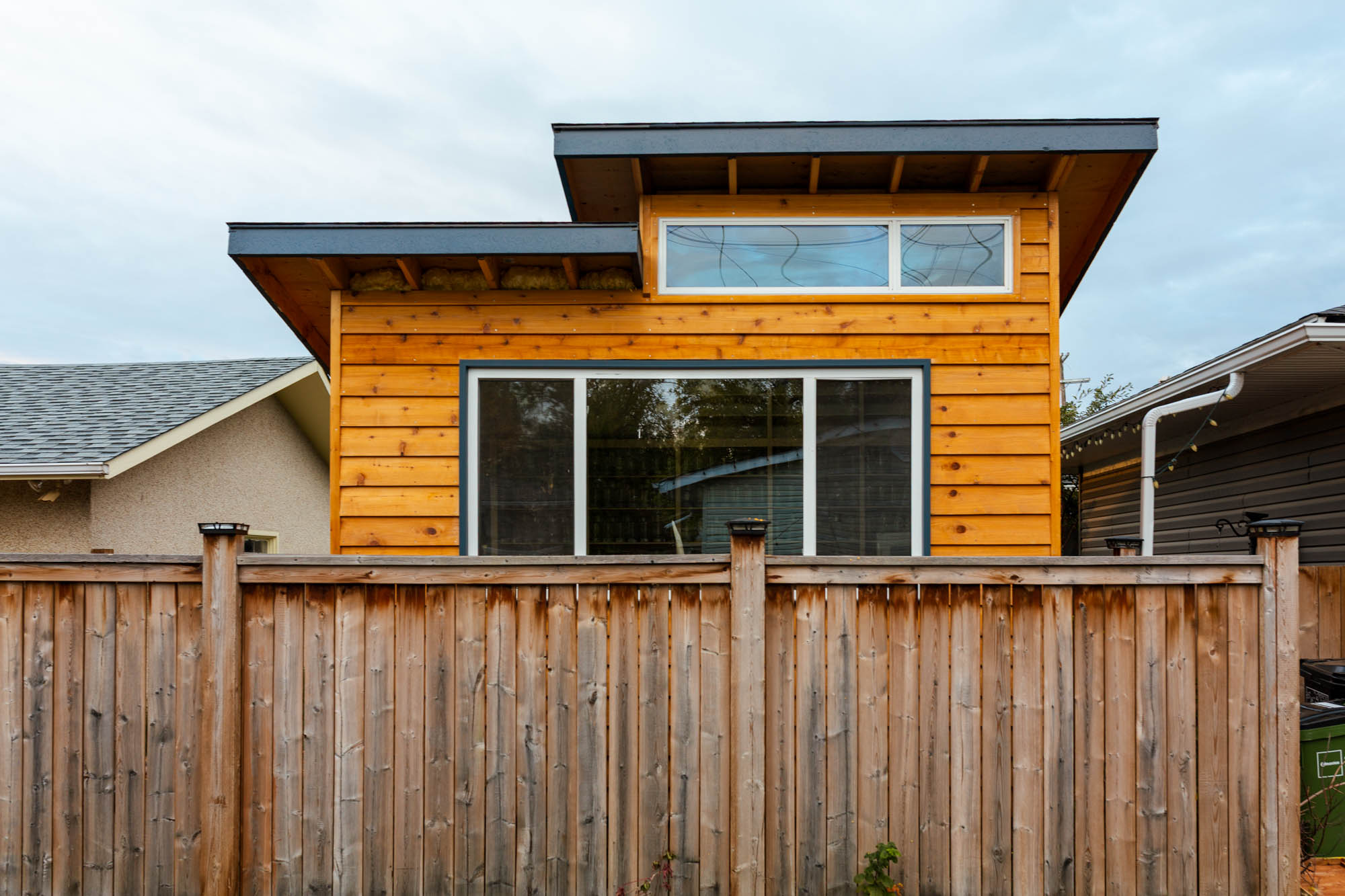 With help from Elise, the final length of siding was installed today. With the studio now fairly sealed from the elements, work can begin on the interior.