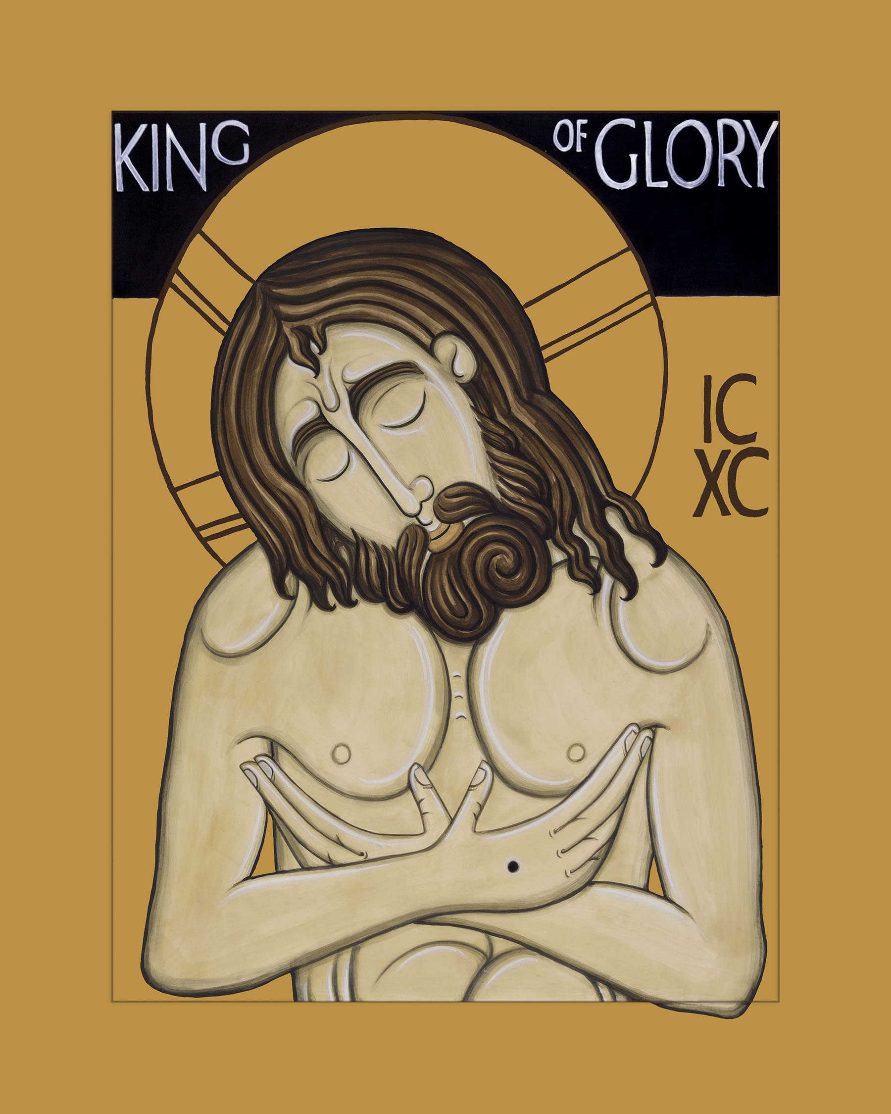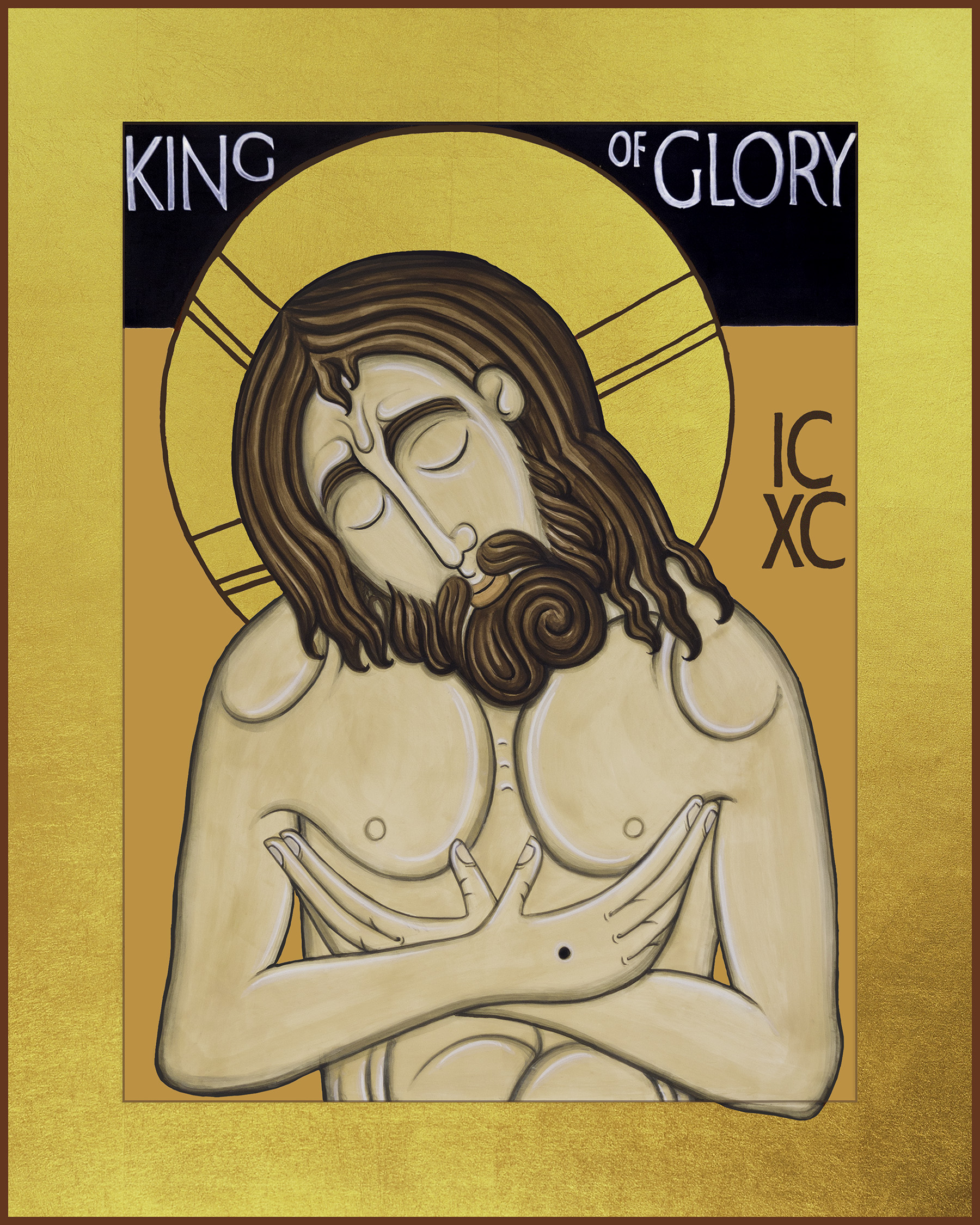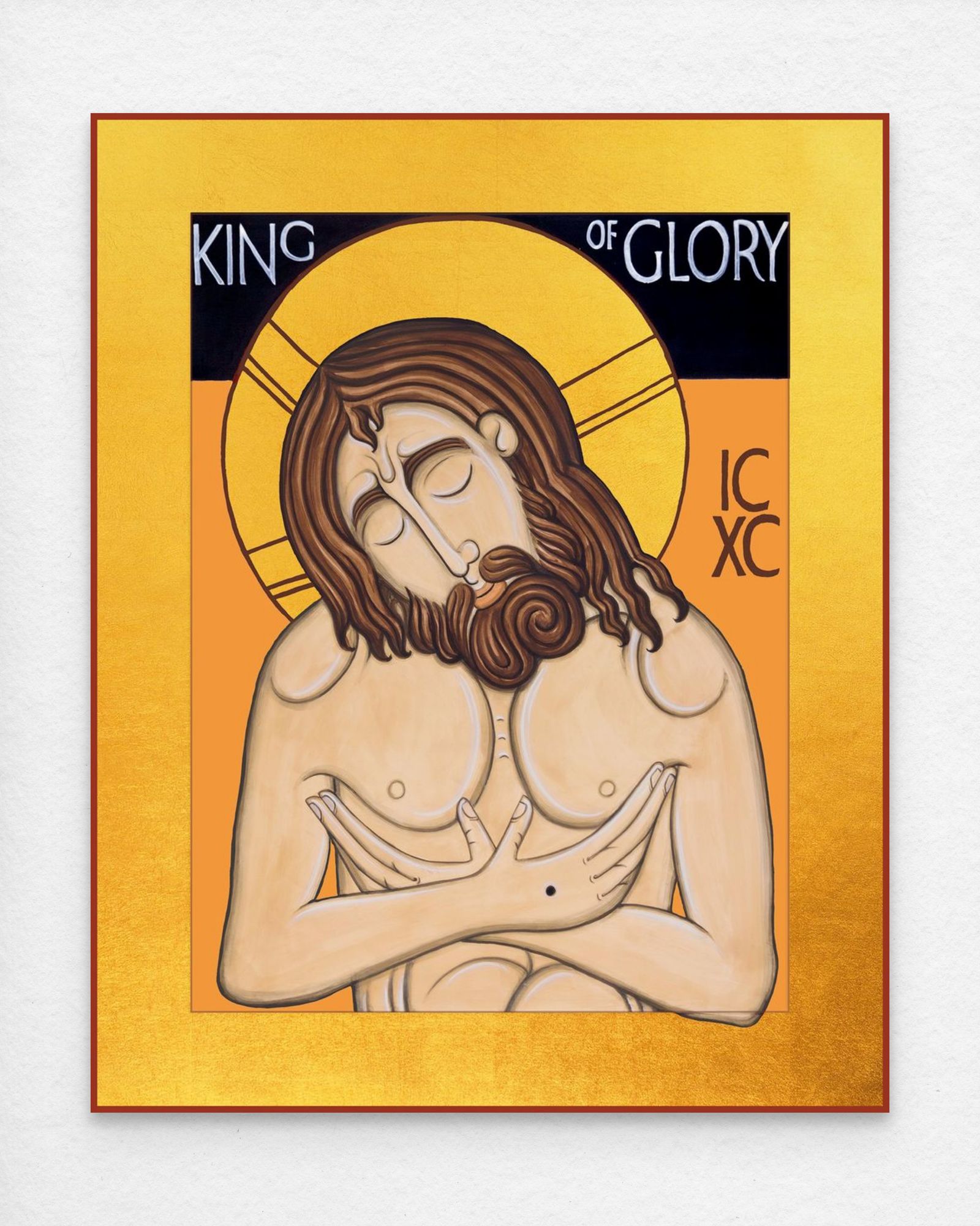 Reproductions from the studio begin with the same printing process as the paper prints, using the highest quality processes to create fine-art prints of unparalleled quality. Once ready, these are permanently affixed either to wooden panels, in the case of smaller reproductions, or to cradled Baltic plywood panels, in the case of larger reproductions. Then the halo and frame of each is gilded with pure gold, to add something of the beautiful heavenly light to the work. Finally, they are edged and vanished to ensure their durability for years to come.